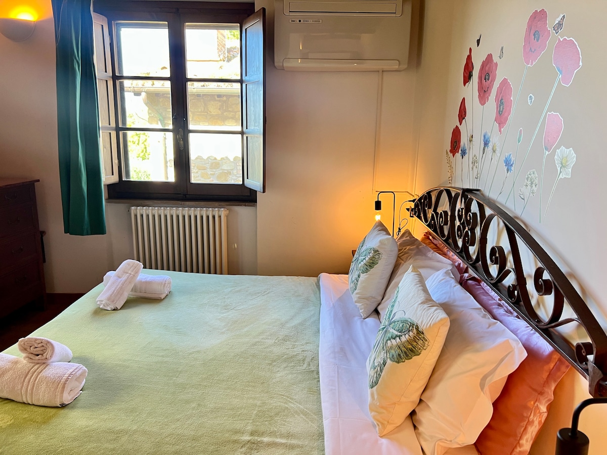 Небесное окно захватывает дух. Как наши единственные гости, вы будете в окружении бесконечных видов, бесконечного спокойствия, звуков поющих птиц и зову оленей. Вниз по долине и во время прогулок вы можете увидеть хорьков лис и диких кабанов. Соберите дикобразые. Дышите! На полпути между Римом и Флоренцией. Рядом с Сиеной, Валь-д'Орча и бесчисленными горячими источниками . Уединенный рай, окруженный божественными ресторанами и жемчужинами древности на вершине холма, такими как Монтепульчано и Монтальчино.