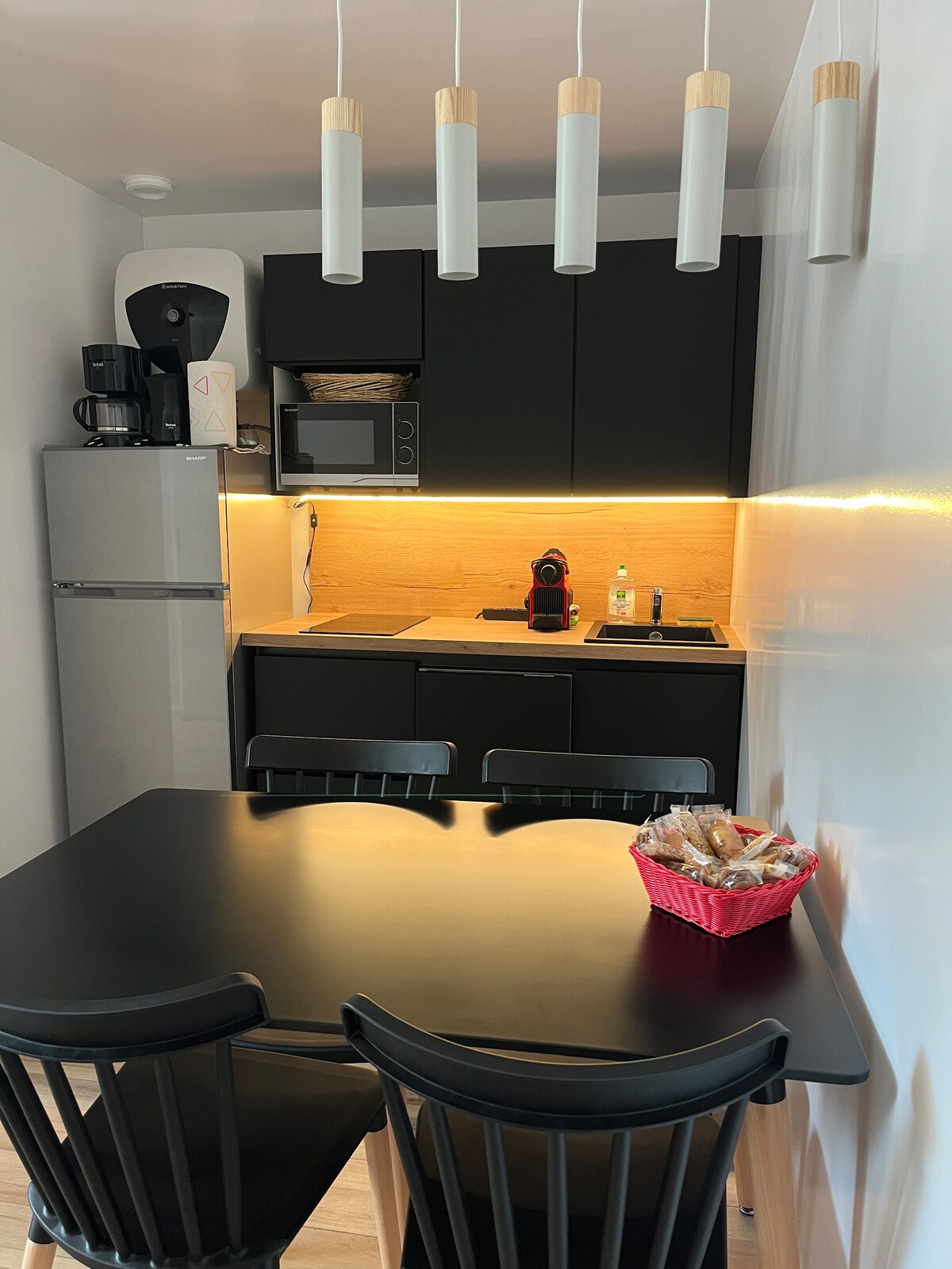 - на 3-й этаж без лифта. - Центр для гостей со всеми удобствами; - Подъезд к автомагистрали A43 - 5 минут на автомобиле и железнодорожном вокзале - 10 минут пешком. - Детская кровать и стульчик при необходимости. - контакт по запросу - Безлимитный доступ в Интернет в Wi-Fi. Видимо, вы найдете - полностью оборудованная кухня. - гостиная зона с телевизором; - двуспальная кровать (140 x 190); - диван-кровать для 2 человек - стиральная машина;