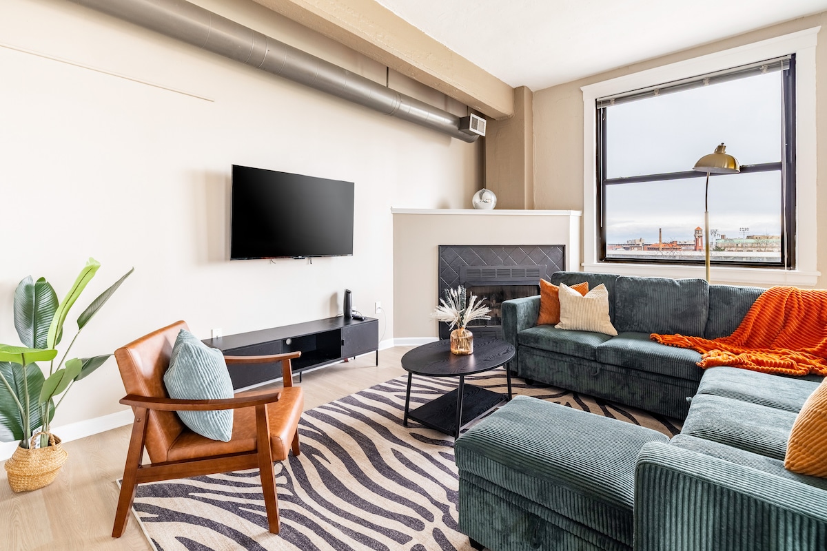 Добро пожаловать в ваше СЧАСТЛИВОЕ МЕСТО! 😎 Остановитесь в этом классном и веселом лофте в центре Кливленда! Высокие потолки, огромные окна и солнечный свет создают особую атмосферу. Это пространство, созданное с игривыми ретро-акцентами, приносит прохладную энергию, которая заставляет вас чувствовать себя счастливыми. Наслаждайтесь кроватью размера King size, двумя телевизорами Smart TV и полностью оборудованной кухней. В здании есть фитнес-центр, сауна и охраняемая подземная парковка.