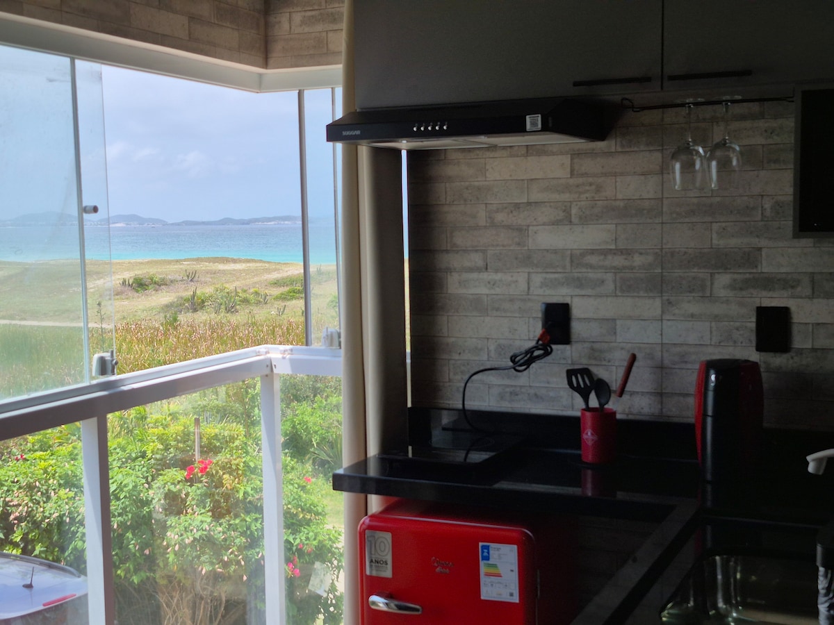 Casa Pé na Areia — Кабу-Фриу Насладитесь комфортом этого дома с видом на море, идеально подходящего для 6 человек. К услугам гостей 2 спальни (1 люкс) с кондиционером, гостиная с телевизором, оборудованная кухня, прачечная и балкон, идеально подходящий для отдыха в гамаке, любуясь восходом и закатом солнца. В кондоминиуме есть охрана, игровая комната и место для барбекю (за дополнительную плату). Пляж Дюнас с кристально чистой водой и белым песком находится у вас под ногами, между пляжами Форте и Фогейте.