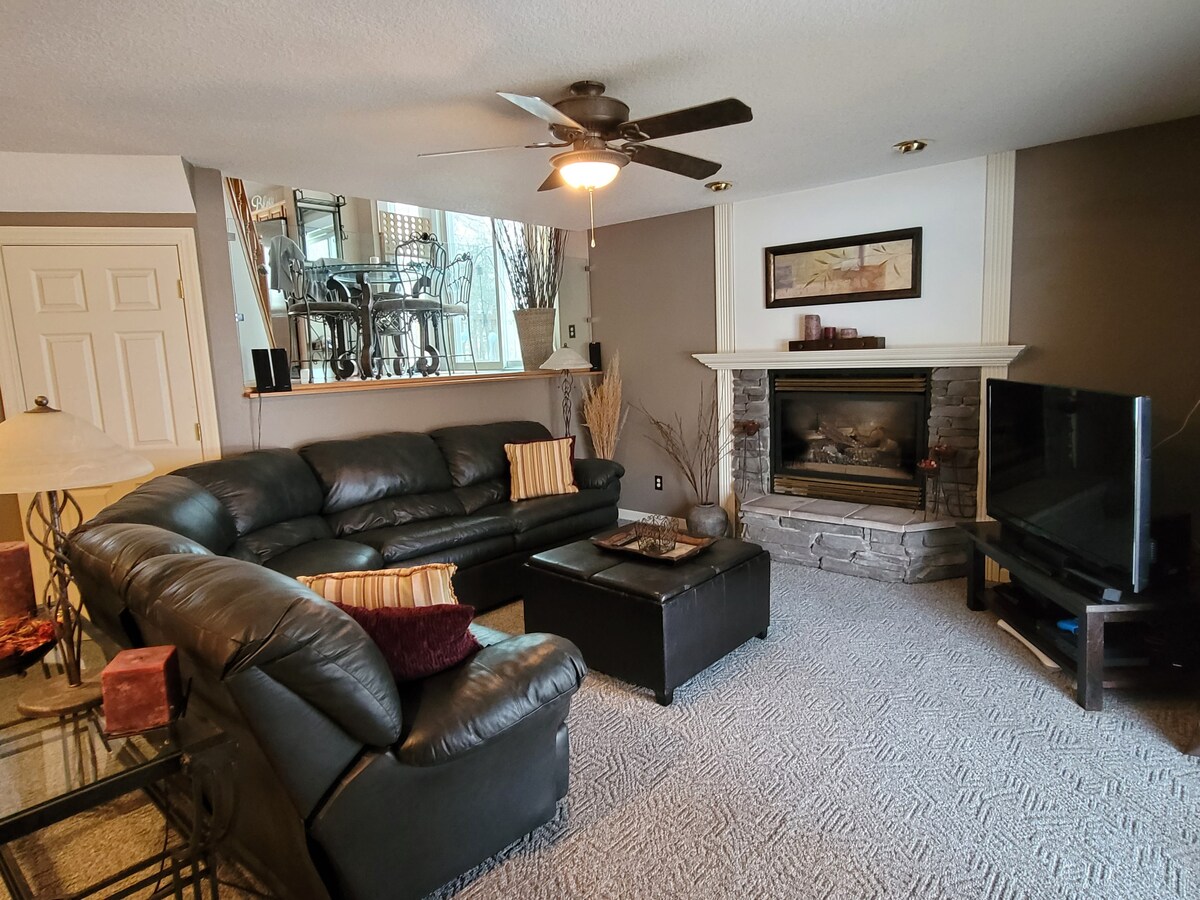 Вы можете хорошо спать после долгого дня катания на снегоходах, охоте, рыбалки или осмотра достопримечательностей в этом тихом месте, расположенном в центре города. Вечером посидите у костра и расслабьтесь. В распоряжении гостей двуспальная кровать размера Queen size, двуспальная кровать и удобный диван для сна. На мини-кухне есть полноразмерный холодильник, плита с двумя конфорками, микроволновая печь, кофеварка, блендер и тостер/печь для пиццы/конвекционная печь. Имейте в виду, что по утрам в среду вам придется делить комнату для вечеринок с некоторыми учащимися на дому.