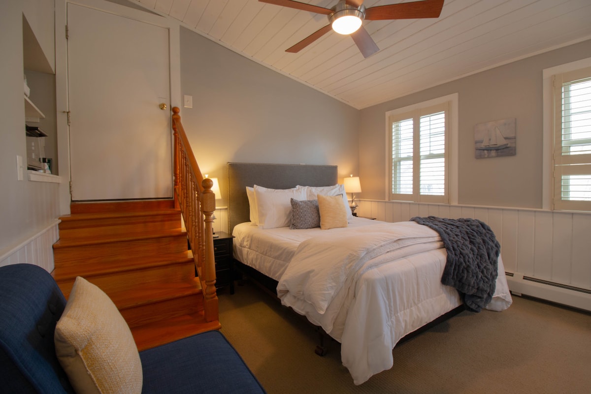 Отдохните и расслабьтесь в этом спокойном, стильном, тихом месте с удобной парковкой. Прогуляйтесь/прокатитесь на велосипеде до пляжа. Наслаждайтесь личным пространством со столовой зоной, диваном, кроватью размера Queen size и отдельной ванной комнатой. Жилье площадью более 600 кв. футов с большим количеством солнечного света - все было построено за последние 2 года. Посетите магазины и кафе Портсмута. Чистое, светлое и личное пространство, подходящее для пар. Два велосипеда и шезлонги. Мы находимся чуть более чем в миле от пляжа и в нескольких минутах езды от достопримечательностей штата Нью-Гемпшир/Мэн.