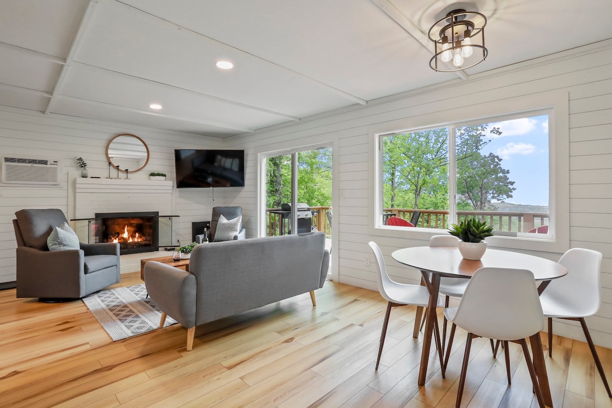 Отдых на вершине горы в Новом рынке, штат Вирджиния (недалеко от Лурея)! Наслаждайтесь захватывающим видом из недавно отремонтированной кухни/гостиной или просторной террасы с гидромассажной ванной, стульями Adirondack, костровой ямой и обеденной зоной. Уютно расположитесь у газового камина и 55-дюймового смарт-телевизора. Кровать размера King size в главной спальне, полная койка с двуспальной кроватью размера Queen size во второй. Идеально подходит для романтического или семейного отдыха. Высокоскоростной Интернет! Менее 30 минут до пещер Лурея, Скайлайн-драйв и отличных пеших прогулок. Полный привод НЕОБХОДИМ, чтобы добраться до жилья