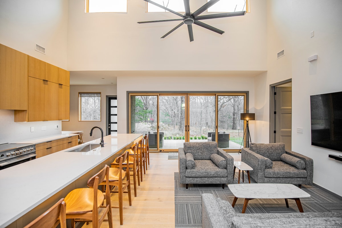 Bike House 1 — это современный дом с 3 спальнями, 2,5 ванными комнатами и прямым доступом к Slaughter Pen Trail. Он расположен напротив развязки Tech Hub, поэтому идеально подходит для велосипедистов и любителей активного отдыха. К услугам гостей джакузи, сауна и панорамные окна сказочный лесной пейзаж. Наслаждайтесь кухней, 85-дюймовым телевизором Smart TV и высококлассной отделкой. Всего в одной миле от центра Бентонвилля и Crystal Bridges. Включает в себя станцию для мойки велосипедов, ремонтную стойку, зарядное устройство для электромобиля, гараж на 2 машины и крытое патио с грилем Weber.