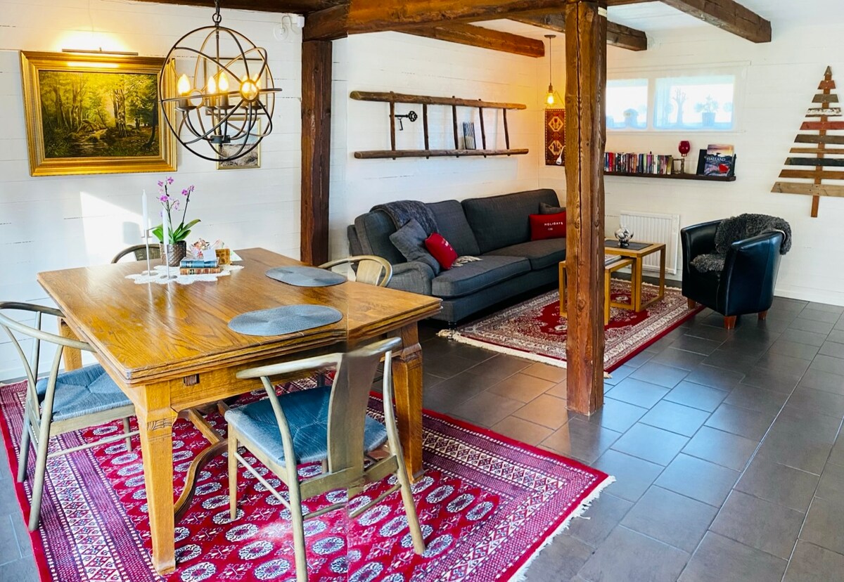 Гостевой дом на участке виллы в Трённинге. Здесь вы живете в лофте площадью 23 кв. м + спальня (диван-кровать 140 см в комнате и матрасы в лофте). До пляжей Геттерёна и центра Варберга можно легко доехать на велосипеде примерно за 20 минут. Автобусная остановка находится примерно в 7 минутах от жилья. В коттедже есть полностью оборудованная кухня со всем необходимым для приготовления пищи. Есть посудомоечная и стиральная машины. Летом 2026 года рядом с патио гостевого дома будут вестись строительные работы.