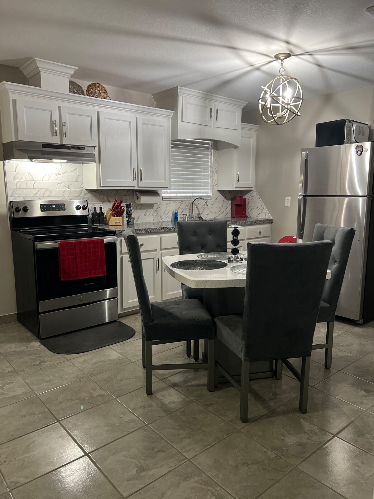 Уютное, приятное, уединенное проживание в этом тихом жилье, сочетающем в себе комфорт и удобство. Очаровательная загородная атмосфера всего в нескольких минутах езды от исторических приграничных городов Рио-Гранде-Сити и Рома, штат Техас. Уютная гостиная-столовая и 2,5 ванные комнаты с расслабляющей ванной/душевой кабиной. Кондиционер и отопление, Wi-Fi и несколько телевизоров. 4 спальни: 2 с кроватями размера Queen size, одна с двумя односпальными кроватями, а в четвертой спальне есть полноразмерная кровать и двухъярусная кровать. Большое место для парковки, гараж на 2 машины!!