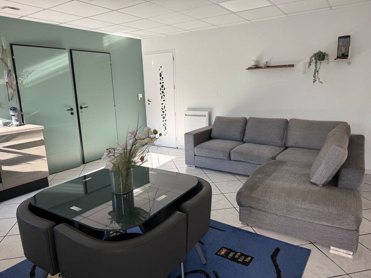 My Bellus - это 4-звездочная квартира на садовом этаже, идеально подходящая для семейного проживания или мини-бронирования от 1 до 4 человек. Идеальное расположение: 2 минуты до больницы La Chataigneraie. В 5 минутах от Arténium. В 10 минутах от центра города Клермон-Ферран. 10 минут до Circuit de Charade. В 10 минутах от Zénith d 'Auvergne. и чуть дальше: Вулкания, Ле-Пуи-де-Дом. ... вы найдете магазины в непосредственной близости, такие как: аптека, пекарня, пекарня, парикмахерская, пиццерия, мясная лавка, табачный пресс.