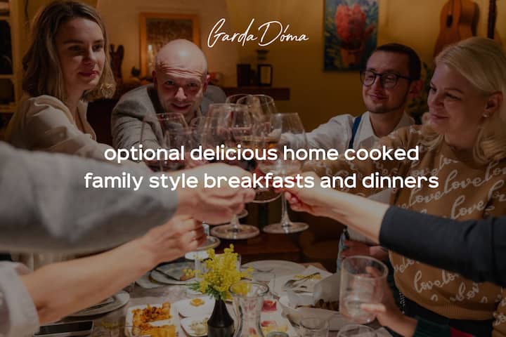 Гарда - это место, которое мы обожаем! Мы любим делиться им с нашими гостями, а также с личными и местными историями. Большинство наших домов для отпуска находятся всего в нескольких минутах ходьбы или езды от нашего семейного гостевого дома, где мы приглашаем гостей присоединиться к нам на завтрак и ужин за одним столом. Чувствуешь себя как у друзей.