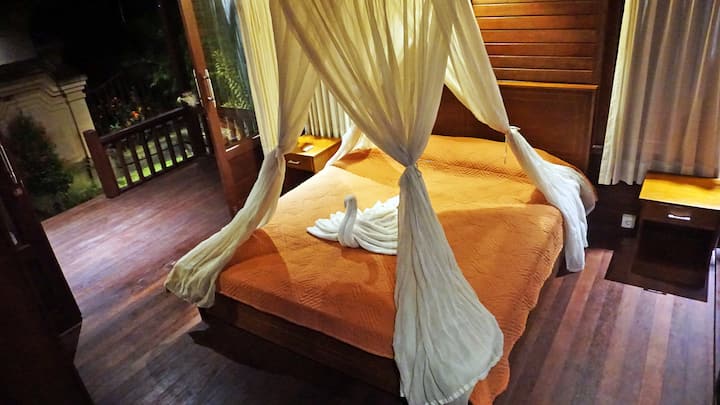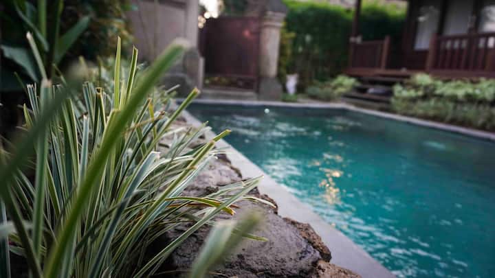Деревянный дом с частным бассейном и кухней, 2 спальни