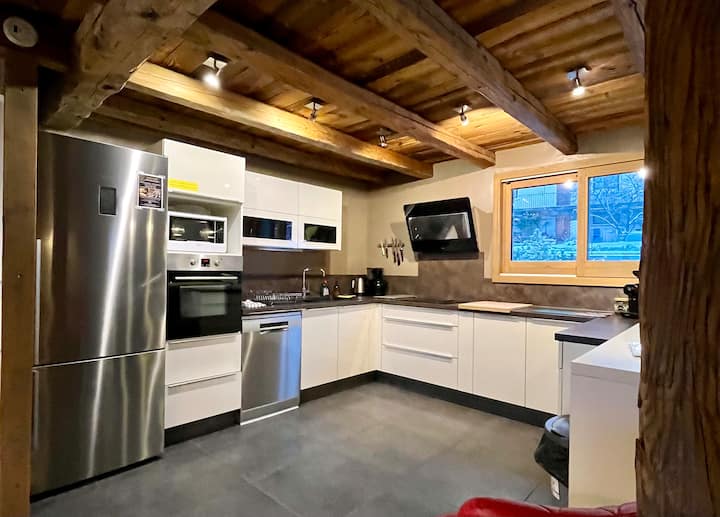 — Полностью оборудованная кухня: большая посудомоечная машина, духовой шкаф, вместительный холодильник, наборы для раклета, кофеварки, тостер и многое другое.