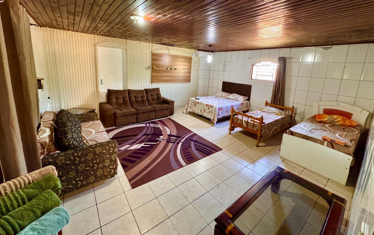 Ваша семья будет рядом со всем, остановившись в этом хорошо расположенном месте. В 20 метрах от центральной площади, с большим комфортом, большая резиденция с несколькими комнатами, большой диван, несколько матрасов, которые могут вместить несколько человек, все комнаты с кондиционером, красивая зона отдыха с бассейном и зоной для барбекю, это стоит проверить. Эта сумма рассчитана на 5 человек, кроме того, с каждого гостя взимается 80 реалов Дети до 10 лет — 40 реалов.