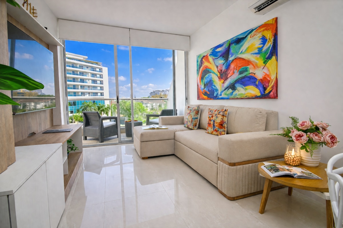 25th Floor Apartment – Ocean and Historic Center View 7 min from the Airport, 10 min from the Historic Center, and 6 min walking to the beach. 2 bedrooms with queen beds and Memory Foam mattresses, 3 bathrooms with showers, dryer, washer, and coffee machine with pods, herbal teas, sugar, and cream as a gift for guests. Amenities: 🛁 Sauna 🧖♀️Turkish bath 🏊♀️ Pools with panoramic view 🅿️ Parking 🌊 Beach access. Toiletries with verbena and lemongrass scent: soap, shampoo, and conditioner.