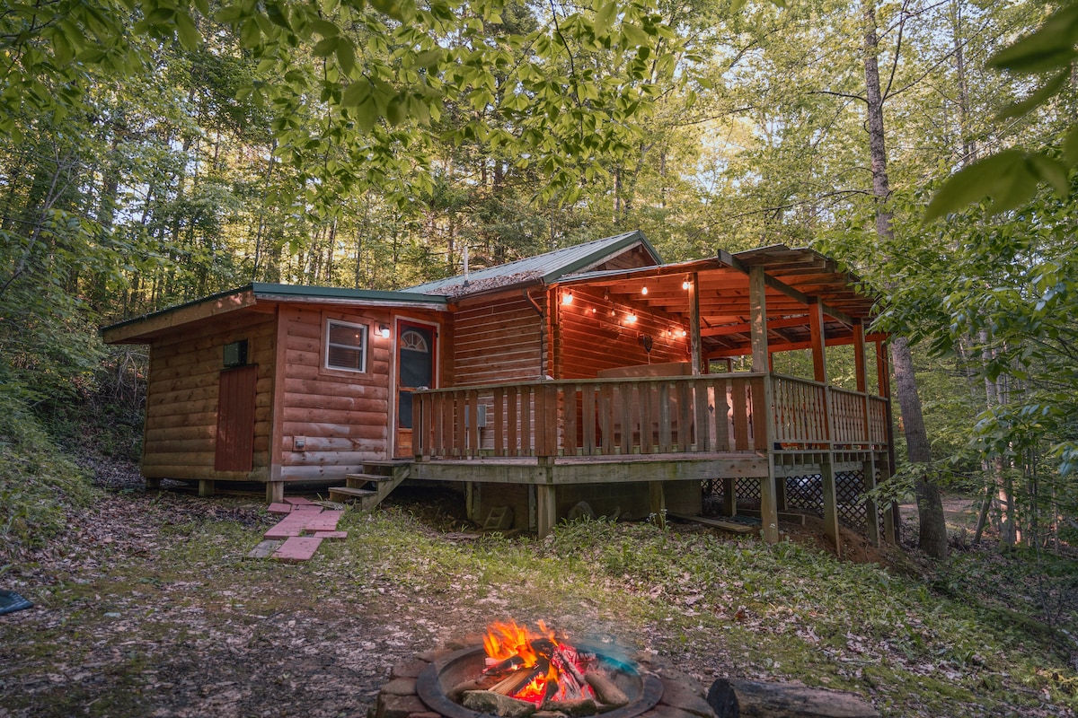 Каркасный домик в лесистой местности, всего в 1 миле от пещеры Старика. Расслабьтесь в джакузи, насладитесь семейным отдыхом у костра или оттенок крыльца. Хижина расположена на тихой улочке вниз по частной улочке, и вы можете заселиться с помощью кнопочной панели. Идеально подходит для парного отдыха или семейного отдыха. Есть одна спальня с двумя двуспальными кроватями размера Queen size, лофт с двуспальной кроватью размера Queen size и двухъярусной комнатой внизу. Газовый камин в гостиной и угольный гриль на открытом воздухе. Есть уличный угольный гриль.