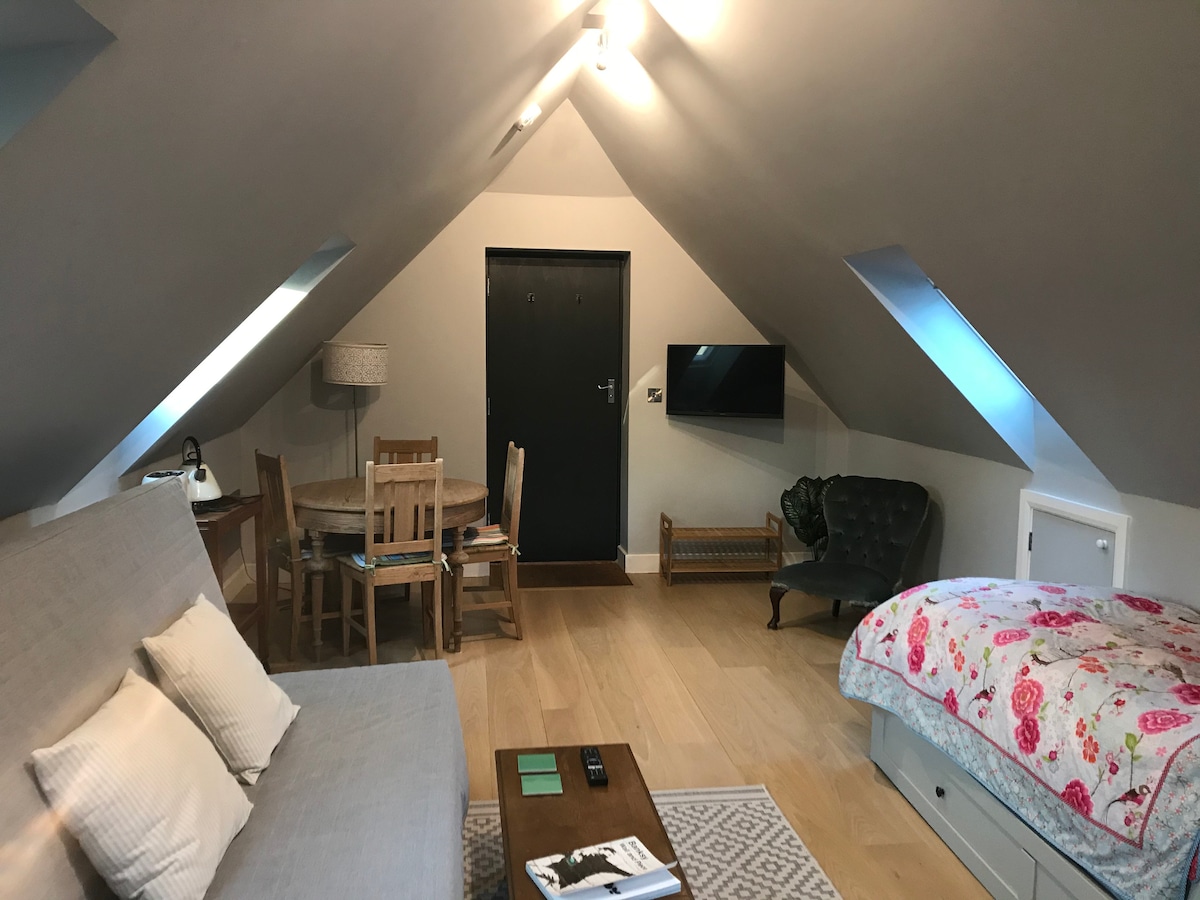 Самостоятельная двухместная комната в нашей отдельной садовой пристройке с частной парковкой на бездорожье и зарядкой электромобиля поблизости. Оснащена двуспальной кроватью размера King size, телевизором, водопадным душем и отдельным туалетом, феном, чайником и мини-холодильником. Снаружи есть стол и стулья для ужина на свежем воздухе! Расположена недалеко от леса Эшдаун с большим количеством загородных прогулок. Мы находимся в 15 минутах езды от Royal Tunbridge Wells и в часе езды от Лондона и побережья Восточного Сассекса. Мы всегда под рукой в главном доме для вашего удобства.