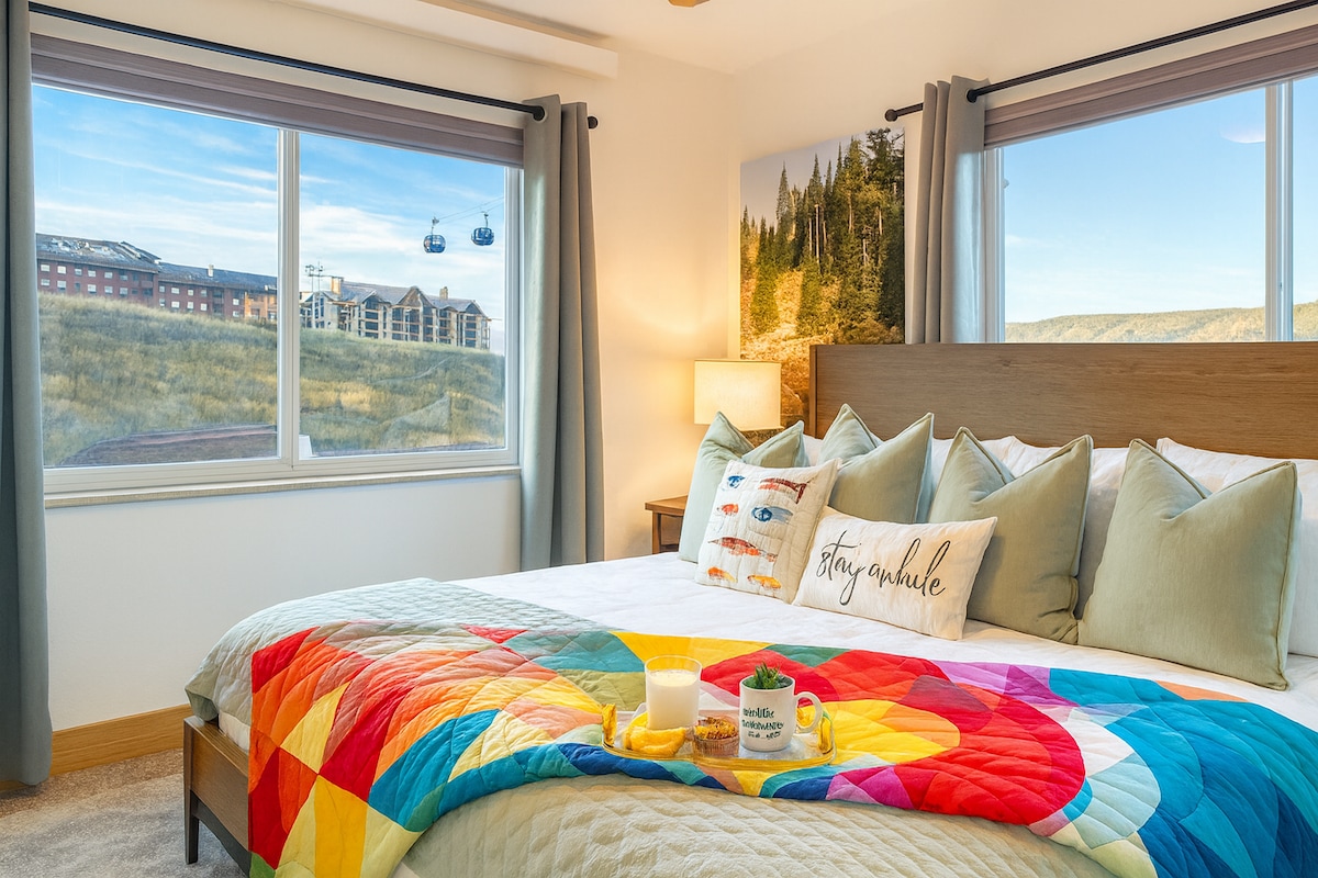 Escape to our modern condo on Steamboat Mountain with stunning 180° views of the Yampa Valley. Enjoy world-class skiing, hiking, shopping, and dining steps from your door! - 10-min walk to the base of the mountain (easier to do in the summer) - 10-min drive to downtown - Free ski shuttle during ski season (8 AM - 5 PM) - Gym, hot tub, and sauna - Fully stocked kitchen for entertaining - The perfect home base for adventure or relaxation!
