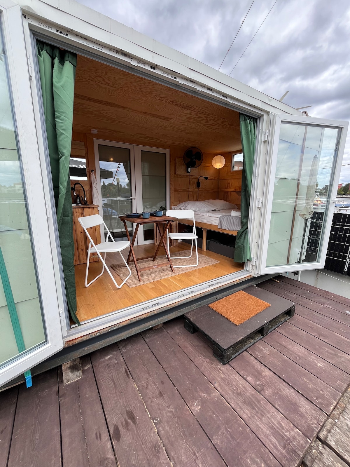 Наш особый микродом находится прямо у воды! Здесь вы просыпаетесь с видом на воду и наслаждаетесь очарованием уютного отдыха. В крошечном доме есть все необходимое для спокойного проживания: - уютная двуспальная кровать; — небольшая мини-кухня для приготовления кофе и простых блюд; — Отдельная ванная комната с душем и туалетом (компостный туалет). — Терраса/настил, чтобы сидеть прямо у воды. Утром первый кофе с видом на воду, вечером бокал вина на террасе.