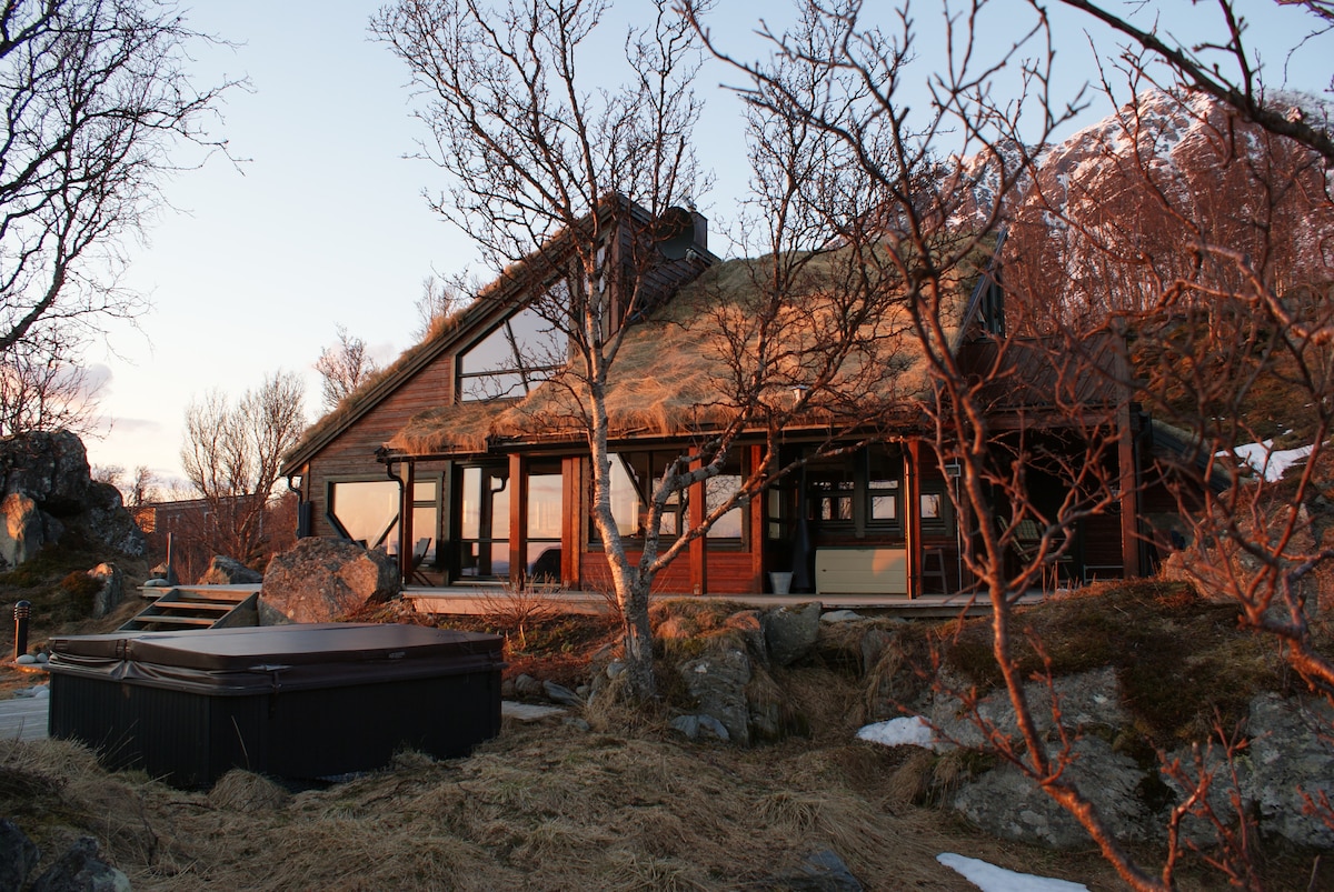 Потрясающий домик, расположенный там, где Лынгенальпы встречаются с океаном. Идеальное расположение для пеших прогулок и катания на лыжах. Парковка рядом с хижиной. Камин внутри. Потрясающий вид. Вы можете наблюдать полуночное солнце или северное сияние с террасы или насладиться потрясающим видом с дивана на первом или втором этаже. Вы увидите орлов, парящих в небе, или, возможно, вы заметите выдру, спускающуюся к морю. После катания на лыжах можно воспользоваться горячей сауной или джакузи. Кухня хорошо оборудована.
