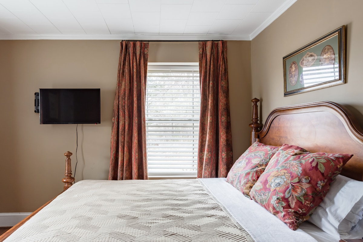 Посетите TIEC (5 миль) и предгорья Северной Каролины в современной и уютной студии, в которой могут разместиться до 3 взрослых (или 2 взрослых и 2 детей). В коттедже недавно отремонтированный интерьер с двуспальной кроватью размера Queen size, диваном-кроватью, роскошным постельным бельем, хорошо оборудованной полноразмерной кухней и прачечной. Отдельный огороженный двор с зоной отдыха, химинеей и газовым грилем. Очень быстрый и надежный Wi-Fi, идеально подходящий для работы или трансляции ваших любимых шоу. Жилье в центре, в 5 милях от TIEC. Рядом с множеством виноделен, пешеходных маршрутов и антикварных магазинов.