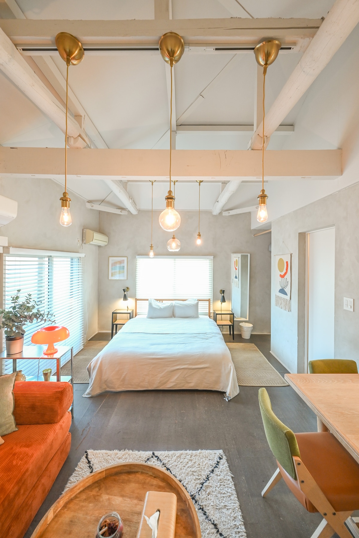 Just a 5-min walk from Kitasenju Station, with easy access to sightseeing spots like Asakusa (16 min) and Akihabara (15 min). Located in a quiet alley behind a lively shopping street, this stylish apartment with a loft sleeps up to 3 guests—great for couples or girls’ trips. The bright interior offers a cozy atmosphere, and a 60-inch screen with projector lets you enjoy movie nights. Restaurants, supermarkets, and a traditional bathhouse are all nearby—perfect for a relaxing Tokyo stay.