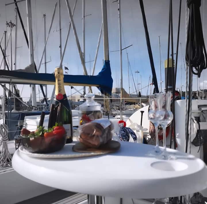 Закат, парус, вино и закуски