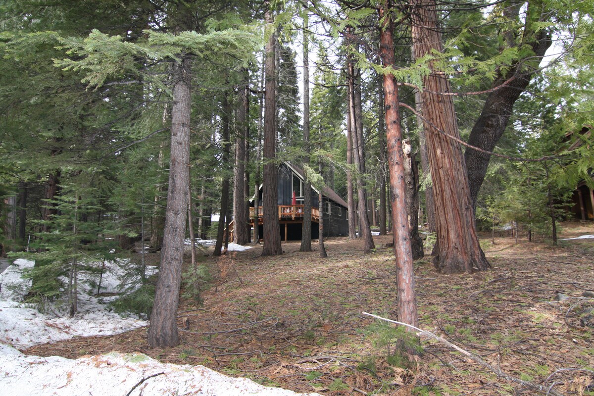 Rare lake views, mid-century A-frame charm, and a dog at your feet — this is the cabin reset you've been looking for. Water quiets the mind. This is one of the few cabins in Lake Mont Pines where you'll actually feel it. Wake up to coffee, step out to a private deck, and stroll downhill to the water. Ski Bear Valley, wander Big Trees, sip wine in Murphys. Groceries close. Adventure and stillness, perfectly balanced.
