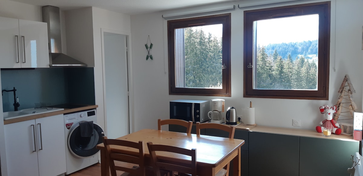 Уютная квартира площадью 35 м2 в горах, в Валле-Верте в Альпах дю Леман, идеально подходит для семей, потому что она находится у подножья горнолыжного курорта Хирментаз зимой, а также пешеходных и горных велосипедных маршрутов летом. 35 минут от ближайших пляжей Женевского озера (Тонон-ле-Бен, Анти, Сьес). В самом центре курорта с пекарней, продуктовым магазином, магазинами проката оборудования, у подножья кресельных подъемников и лыжной школы в 100 м.