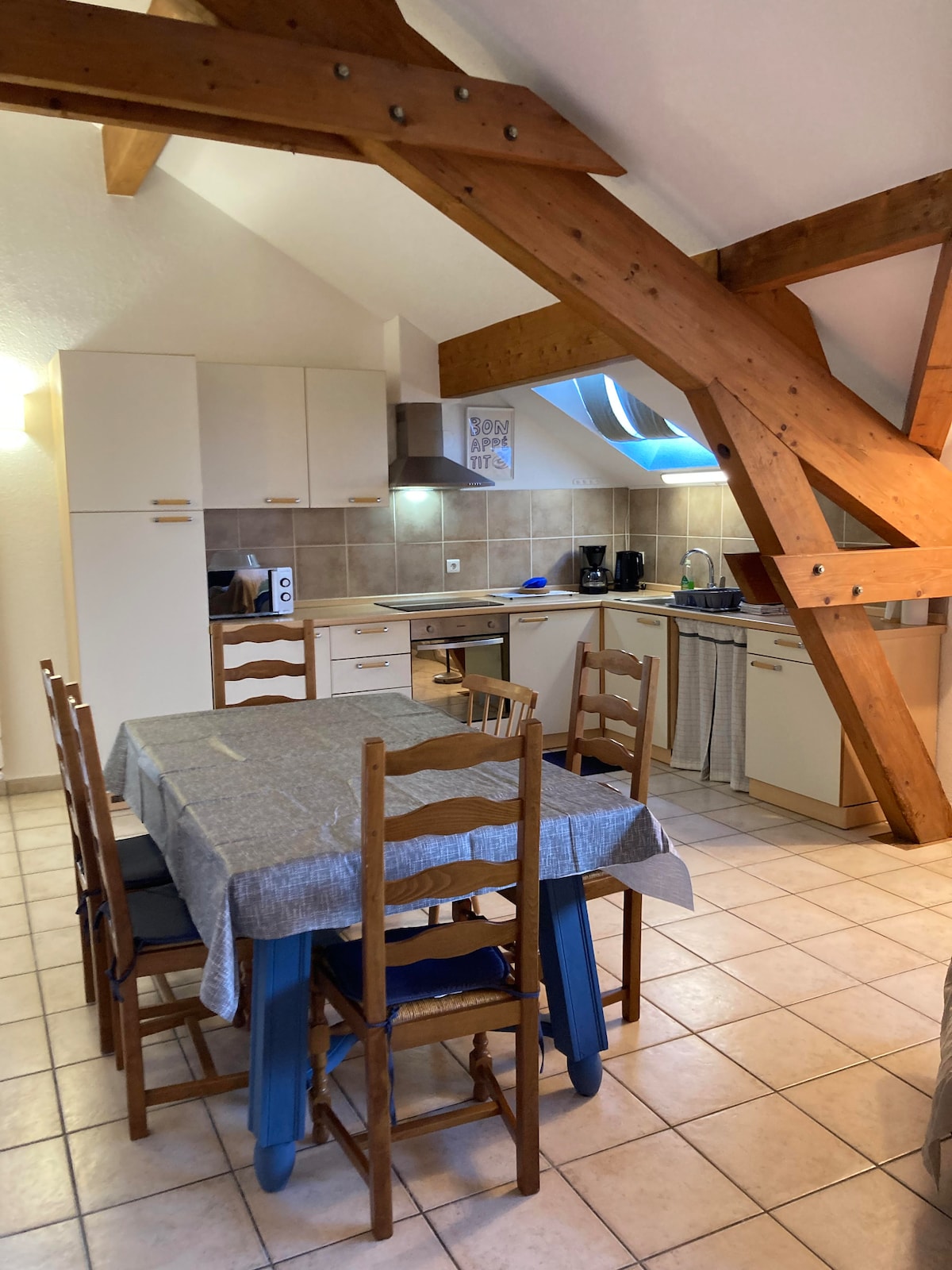 Отремонтированный старый дом площадью 130 м2 с характером, прилегающий, независимый, тихий в центре природы. Рядом со всеми удобствами: пекарня, продуктовый магазин, пиццерия, ресторан, бар. 3 спальни оборудованы телевизором, а в 2 главных спальнях есть душевая комната, мы предоставляем постельное белье и банные полотенца. У вас будет отдельная терраса с барбекю в обширном цветущем саду и устроена для детей, общая с владельцами.
