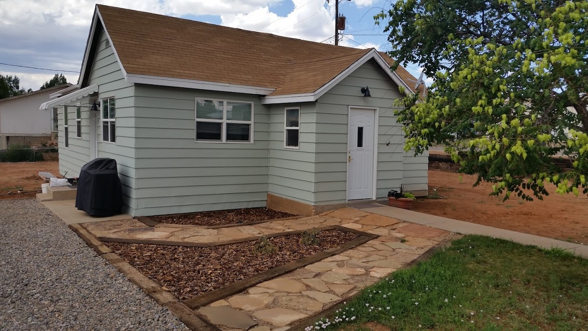 Уютный и комфортабельный гостевой дом с кроватью размера Queen size и раскладной кроватью для дополнительных гостей. Под кухонной раковиной есть тостер, плита, электрическая сковорода, мультиварка и тостер, а также кулинарное масло, кухонные принадлежности и несколько специй. Дом находится недалеко от природных мостов, гусиных шеек, Долины богов, национального памятника Медвежье ухо, Каньонлендс, Арчес и т. д. Приезжайте и наслаждайтесь отличным расположением, чистой, удобной кроватью и ванной комнатой, пока вы находитесь в красивом районе.