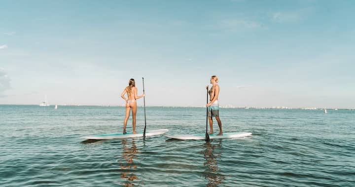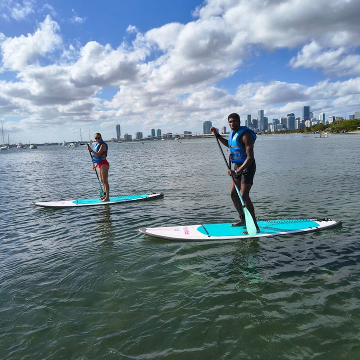 Сапсерфинг в заливе Бискейн с видом на город