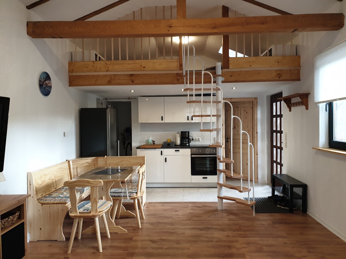 Отдых на ферме! Вы будете жить в прекрасно открытом и просторном лофте, который раньше был сенотом над конюшней. На нижнем этаже здания находится наше небольшое фермерское кафе, которое открыто только по выходным. Оттуда вы поднимаетесь по лестнице в лофт. Жилой уровень составляет около 65 квадратных метров, до открытого спального места можно добраться по другой лестнице!