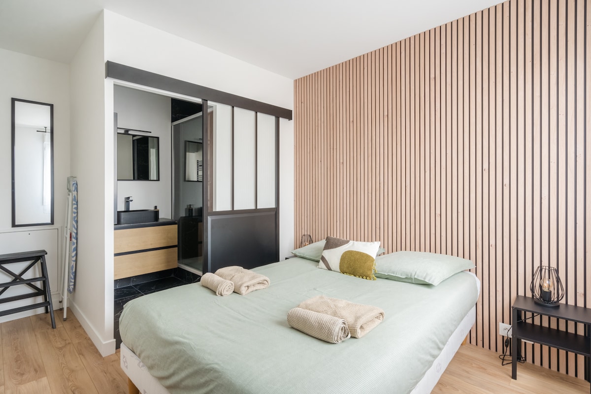 Добро пожаловать в эту исключительную квартиру T2, расположенную в Bussy St Georges, где комфорт, практичность и близость к основным достопримечательностям и символическим местам парижского региона сочетаются для незабываемого отдыха. *Рядом с ДИСНЕЕМ: 10 минут на машине и 2 остановки. *Рядом с ВОКЗАЛОМ: 3 минуты пешком. *Собственная парковка. *быстрое подключение к Wi-Fi; *Рабочий стол. *Меблированная кухня. *Балкон для кофе. * Профессиональная уборка при выезде каждого гостя.