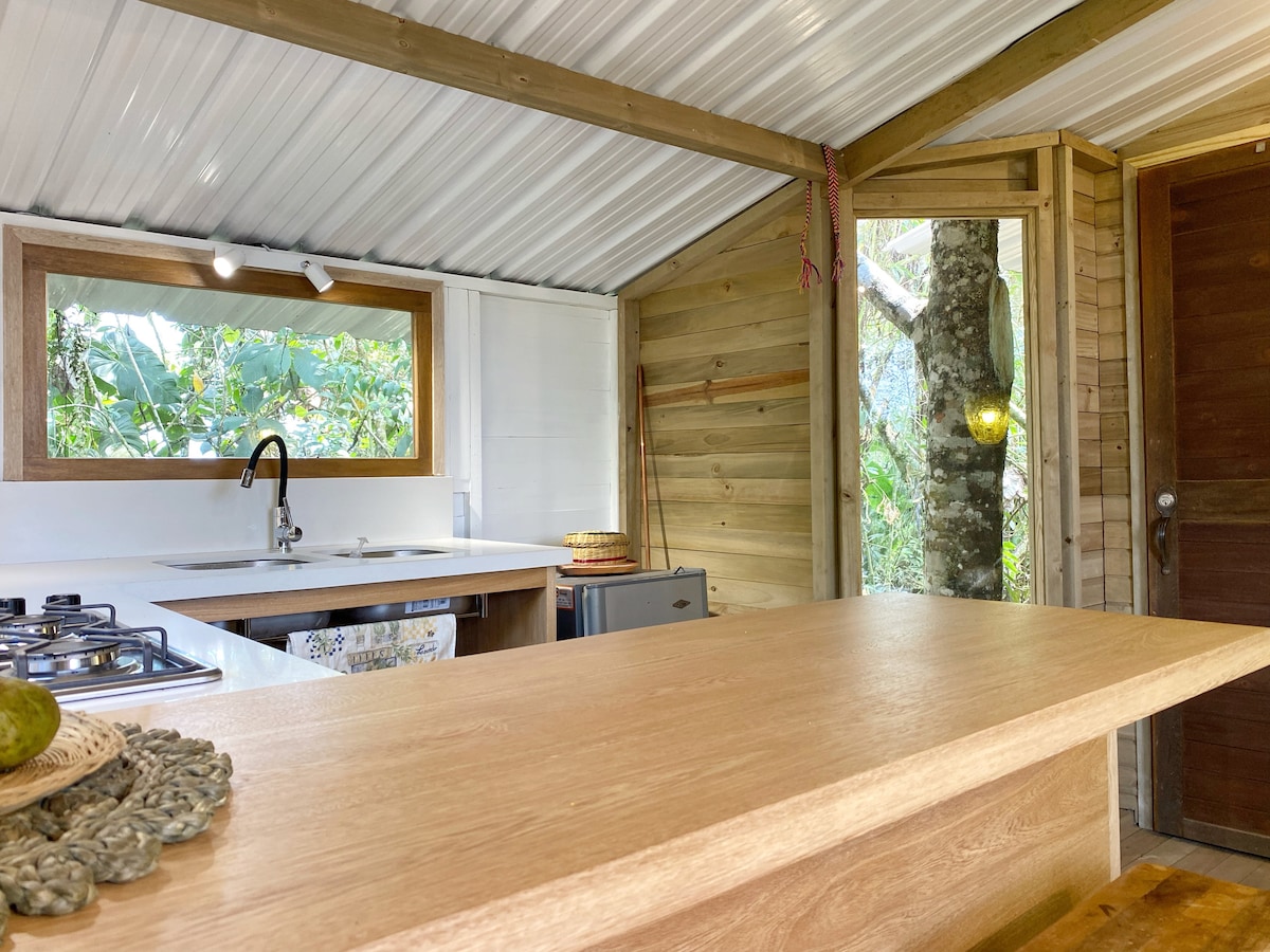Ubicada en una hermosa vereda campesina, esta cabaña en madera cuenta con todo lo necesario para vivir cómodo en la naturaleza: cocina moderna completamente equipada, cama doble, ducha con agua caliente y escritorio doble con buen WiFi (90 mbps). Fácil acceso en carro desde Medellín, Marinilla o El Carmen. Zona con servicio de transporte público. Parqueadero cubierto disponible.