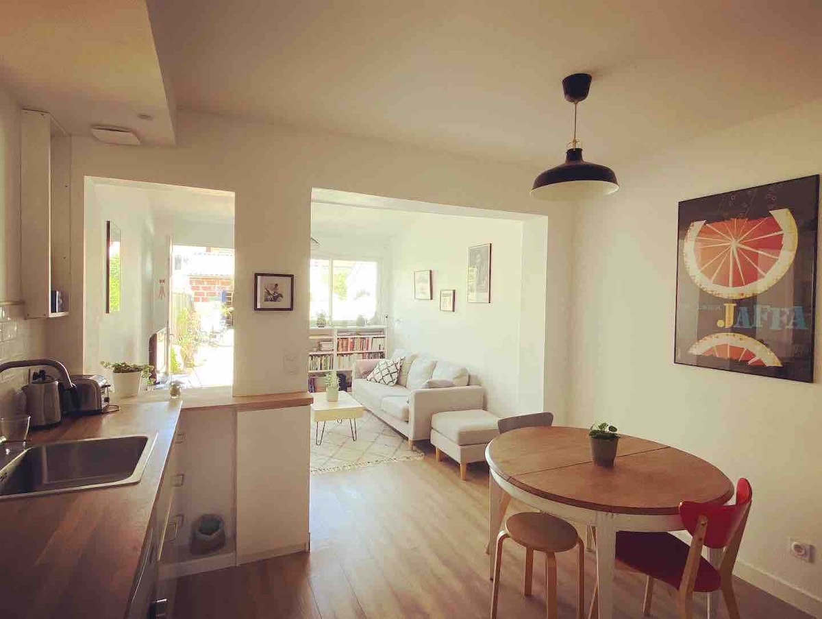 Приезжайте и зарядитесь энергией в этом доме на первом этаже с собственной деревянной террасой площадью 35 м2. 1 спальня с 1 двуспальной кроватью, а также «настоящий» диван-кровать в гостиной рассчитан на 4 человек. Предоставление всего детского оборудования (стульчик, кроватка...) при необходимости. Нет необходимости в автомобиле, расположенном в 120 м от трамвайной линии A, прямой линии A, прямой линии в 10 минутах от центра Бордо. Также рядом со станцией Cenon SNCF. Нет необходимости в автомобиле поблизости. 😊