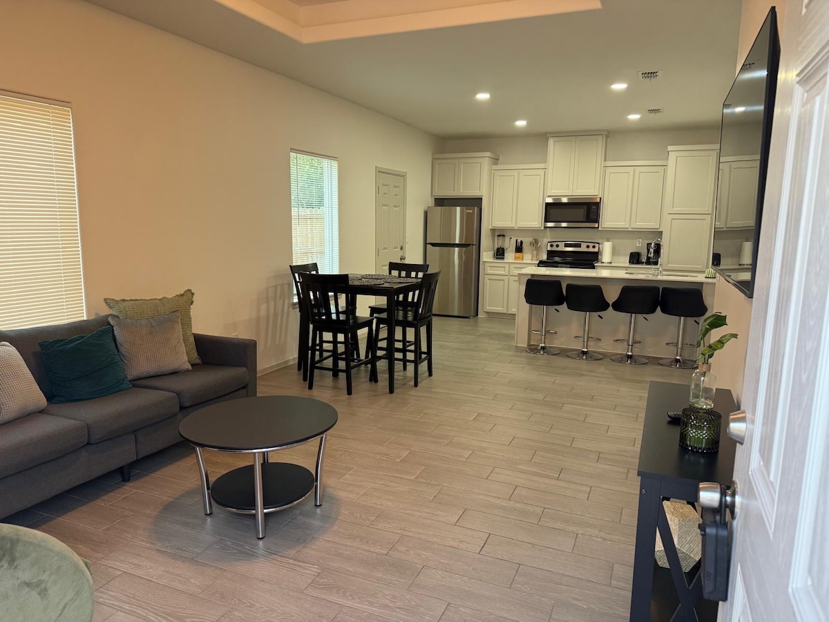 Рядом utrgv и регион One в Эдинбурге, Техас. Квартира с 2 спальнями, стильная, комфортабельная. В нескольких минутах от крупных больниц, стадионов, достопримечательностей и ресторанов в Эдинбурге. Насладитесь просторной гостиной, спальней с удобной кроватью размера Queen size и King size, 2 ванными комнатами, обеденной зоной с красивой кухней. У вас есть все необходимое прямо в собственной квартире. Мы также предоставляем вам дополнительный комфорт с помощью наружных камер. Фантастический район. Отлично подходит для долгосрочного и краткосрочного проживания.