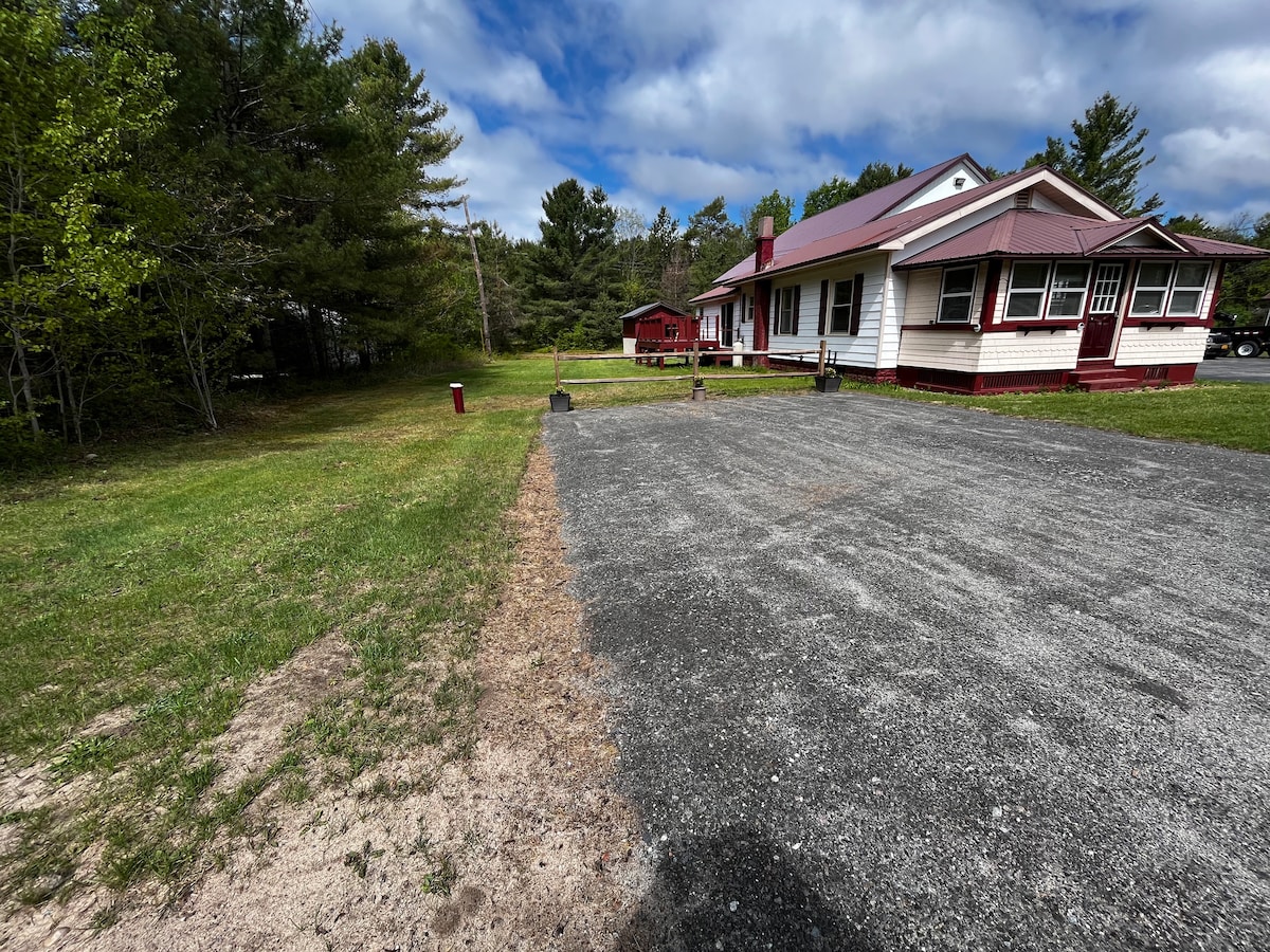 Остановитесь в тихом современном домике, расположенном в центре города на проселочной дороге в Кине, доме Хай-Пикс в Адирондаке. Всего в 15–20 минутах езды от всех основных достопримечательностей: Лейк-Плэсид, Уайтфейс, Adirondack Loj и плотина Марси. Светлый и спокойный оазис, чтобы отдохнуть от приключений в Адирондак с видом на горы из вашей кровати, с террасы или из костровой ямы. Насладитесь частным лугом с выходом к естественному ручью с купальными лугами и водопадами. Кровать размера Queen size + раскладной диван, на котором могут разместиться 1 взрослый/2 детей. РАССЛАБЬТЕСЬ!