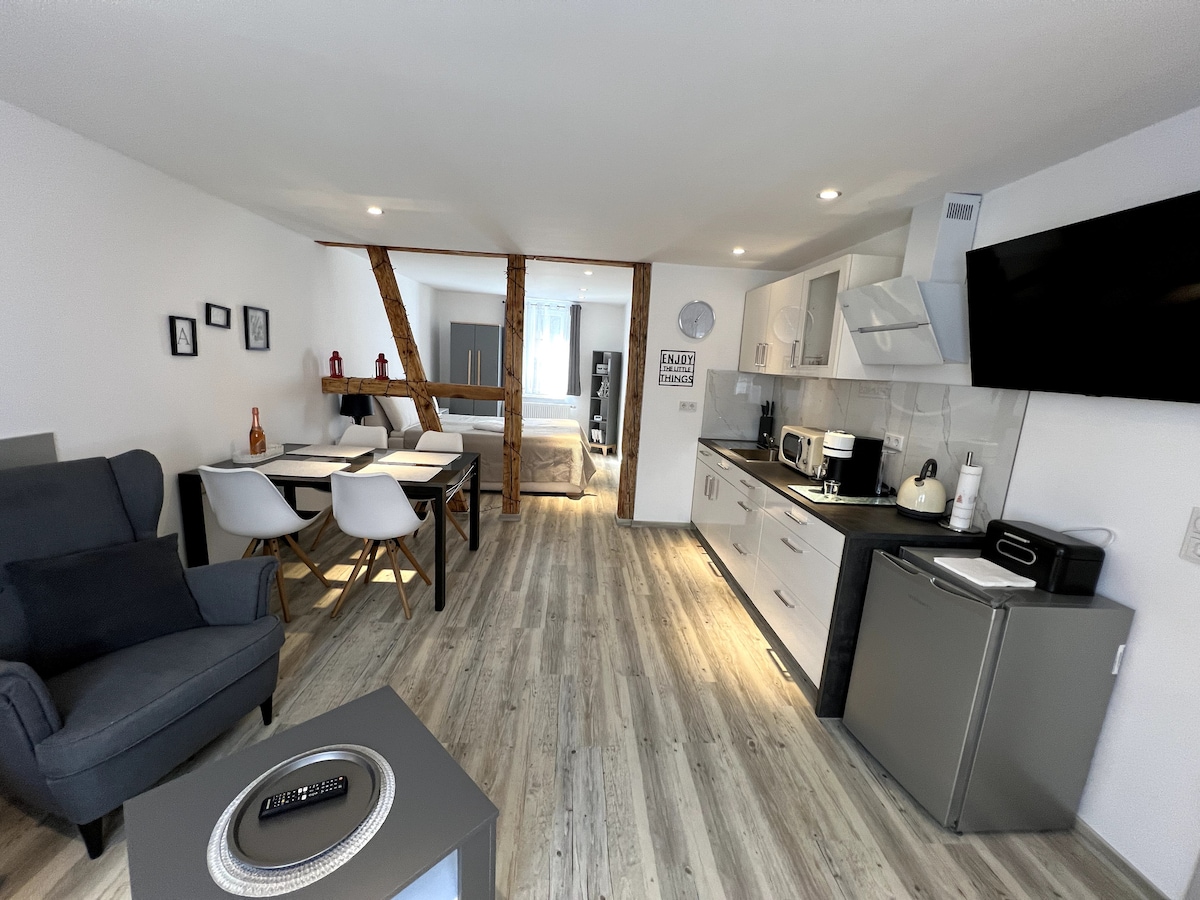 Наша небольшая и комфортабельная квартира была недавно отремонтирована после долгосрочной аренды и теперь ждет приятных гостей, которые хотят отдохнуть в ней и особенно в нашей прекрасной природе на краю южного Гарца. Сама квартира доступна. Дорожка от парковки на территории до входной двери дома ведет по мощеным участкам с небольшим поперечным уклоном.