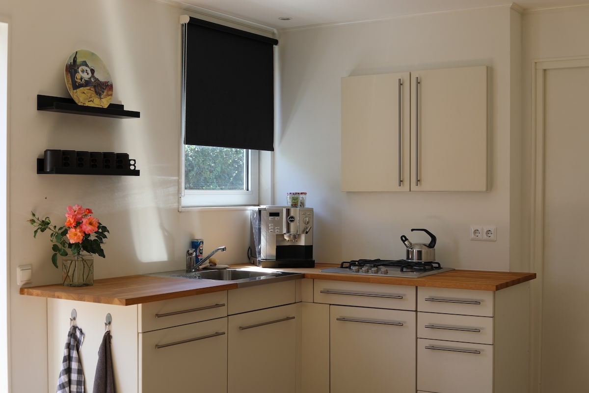 На окраине центра Хогевена вы можете остановиться в нашей просторной и светлой студии в садовом домике с открытой кухней, ванной комнатой, удобной гостиной, обеденной зоной и прекрасной большой кроватью. Приезжайте и наслаждайтесь прекрасным Дрентом. Откройте для себя Двингелдервельд, прокатитесь на велосипеде по Рестдалу или посетите одну из живописных деревень поблизости. Вы можете безопасно хранить свои велосипеды в нашем гараже, а для коротких поездок у нас есть велосипеды напрокат. Магазины, рестораны и кафе находятся в нескольких минутах ходьбы. Мы с нетерпением ждем вашего приезда!
