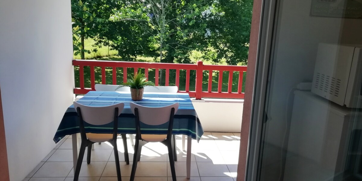 Большая квартира площадью 39кв. м с современными эскизами на высоте Камбо-ле-Бен. Квартира расположена в небольшой, тихой, лесистой резиденции в перечисленном лесу. Вы можете насладиться его бассейном, открытым все лето, и фронтоном, чтобы потренироваться в Пала. Наша квартира идеально подходит для приема вас во время лечения или во время вашего отдыха. Полностью оборудованный и украшенный Wi-Fi, все, что вам нужно сделать, это положить свои сумки, чтобы в полной мере насладиться им.