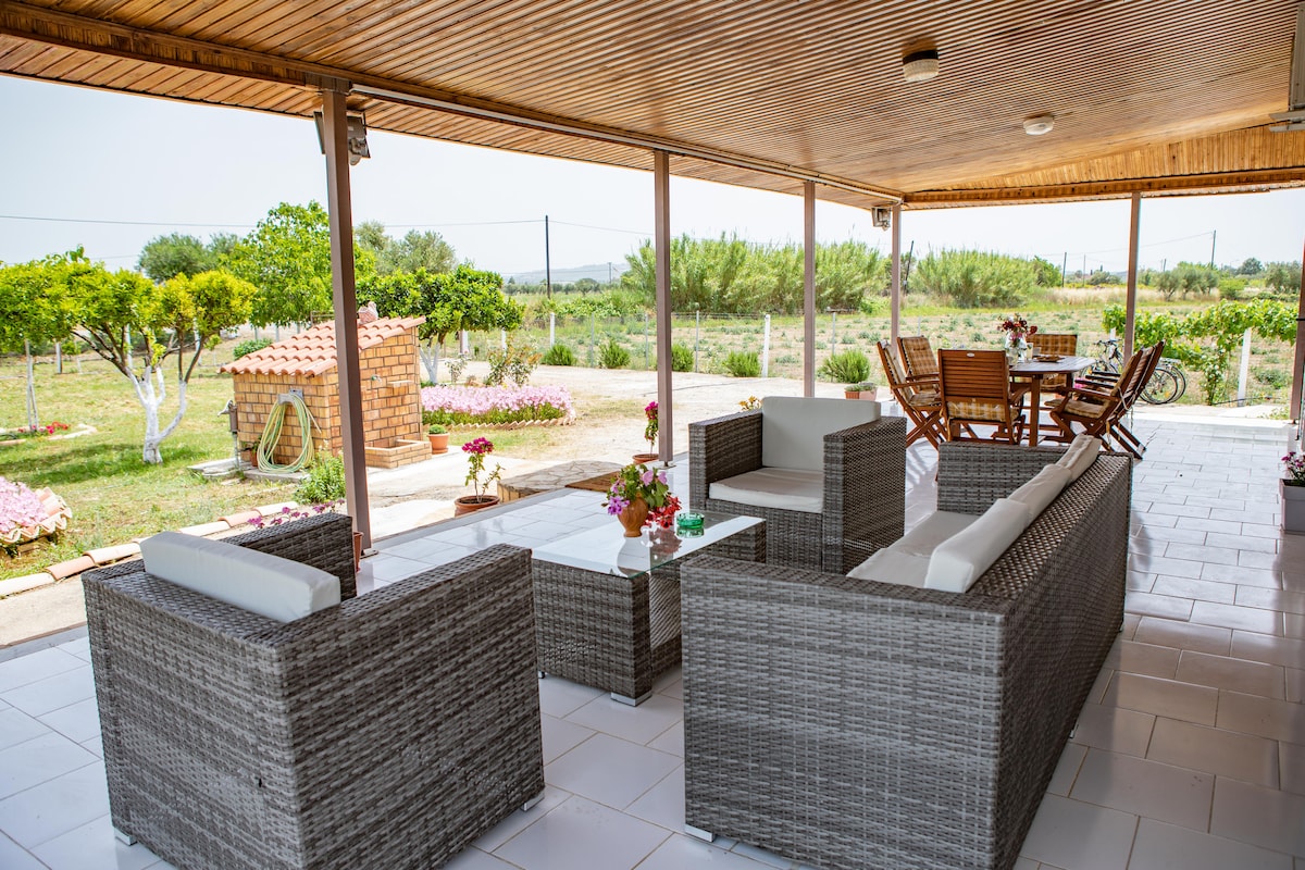 Отдохните вдали от городской суеты в саду, полном оливок и других фруктовых деревьев. Попробуйте плоды природы, наслаждаясь великолепным закатом с видом на море и острова Закинф и Кефалония. Это место наполнено позитивной энергией, и вы почувствуете это в своем утреннем пробуждении и вечернем созерцании. Сад идеально подходит для отдыха, гимнастики и вечеров для еды и веселья с хорошей компанией. Уверена, вам понравится это место, как и мы.