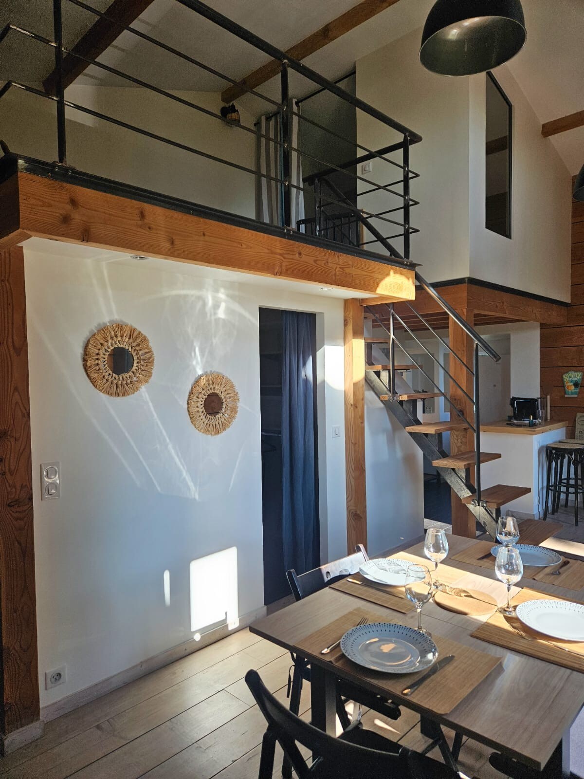 Студия рядом с нашим домом площадью 23 м2 с мини-кухней (электрическая духовка, стеклокерамическая плита, микроволновая печь, электрическая кофеварка, холодильник/морозильная камера, посуда, постельное белье...), отдельный вход, Отдельный туалет на первом этаже, спальня на втором этаже с собственной ванной комнатой, полотенца и постельное белье предоставляются. Закрытая крытая парковка на 1 машину.