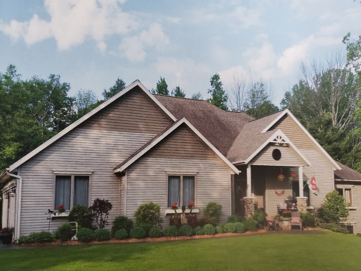 В этом шале Cabin A-frame в лесу есть 3 спальни и удобства для четырехсезонного пребывания. Кухня имеет открытую концепцию просторной гостиной с естественным камином. Две ванные комнаты с туалетом, прачечная на первом этаже, открытая терраса и костер. Прокатитесь прямо до трасс для снегоходов, 25-30 минут на лыжах в Caberfae & Crystal Mountain, горный велосипед, дорожный велосипед до Траверс-Сити. Пешие прогулки, каноэ/каякинг и квадроцикл/UTV. Сезон охоты продолжается, проверьте на сайтах Мичигана в разрешенных близлежащих районах.