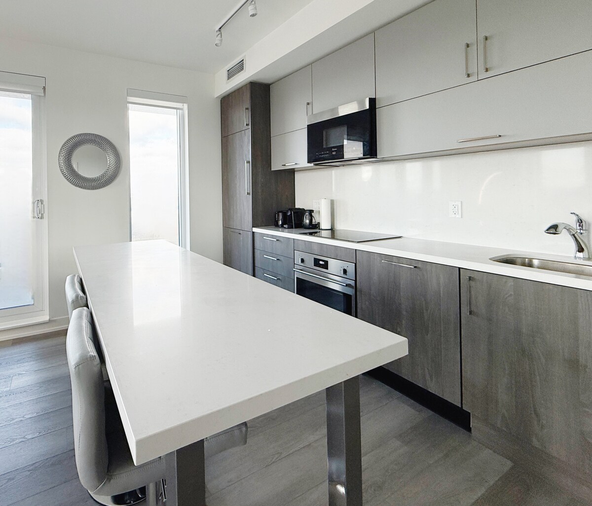 Полностью отремонтированная, современная, светлая, роскошная и просторная ( более 1800 кв. футов) квартира с 2 спальнями и 2 ванными комнатами с потолком над землей, отдельным входом и патио для вашего следующего уютного дома вдали от дома! 5-звездочный рейтинг и лучшие 5% жилья в AirBnB! Так же центрально, как и в ГТА. Вы будете недалеко от аэропорта Пирсон, шоссе 401/404/407, торговых центров, продуктовых магазинов и множества модных ресторанов, кинотеатров, парков и велосипедных/ пешеходных троп. Бронируйте с уверенностью!