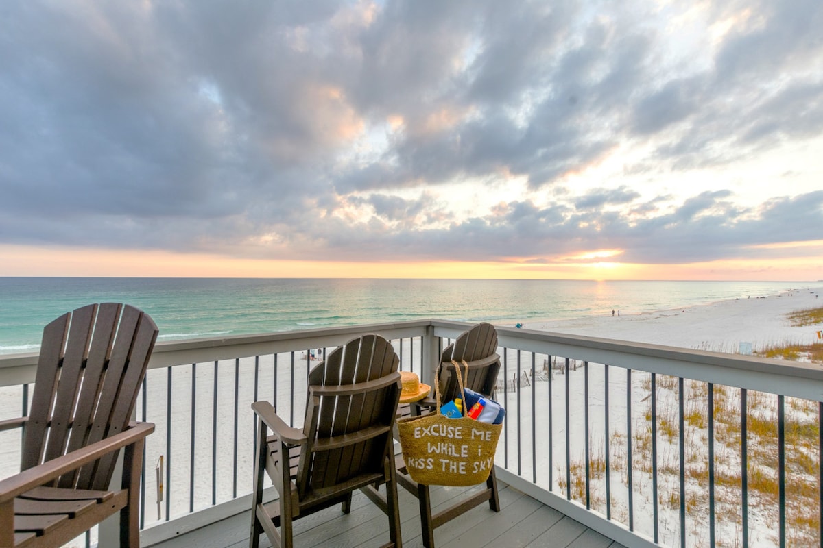 ☆☆ Welcome to Aloha Y'all ☆☆ Meticulously reimagined, this exceptional beachfront retreat showcases unobstructed panoramic views of the Gulf and its sugar white sandy beaches. Begin your mornings or unwind at sunset on your private balcony. Complimentary seasonal beach service is included (a $45/day value). Experience the distinction of a home ranked among the top 1% of Airbnb properties. • The Beach - 0.0 mi • Groceries - 0.6 mi • Outlet Mall - 0.8 mi • 20+ restaurants - < 1 mile