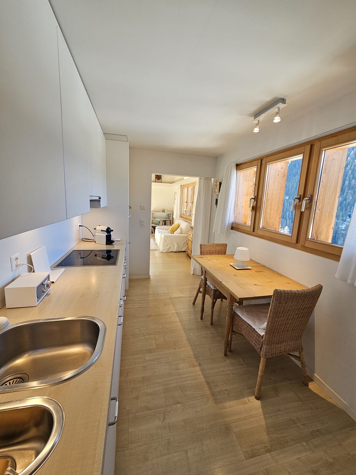 Новая квартира в старых стенах ждет своих гостей. Он расположен прямо на станции Landwasser, Rinerhornbahn и остановке Davos Glaris/ автобусная остановка в 2 минутах ходьбы. Современная кухня включена в гостиную. Отдельная спальня и ванная комната в синем цвете дополняют квартиру. 2 комнаты - место перед квартирой - гараж для автомобиля, лыж и велосипедов - подходит для семей - Davos Klosters Premiumcard включено.