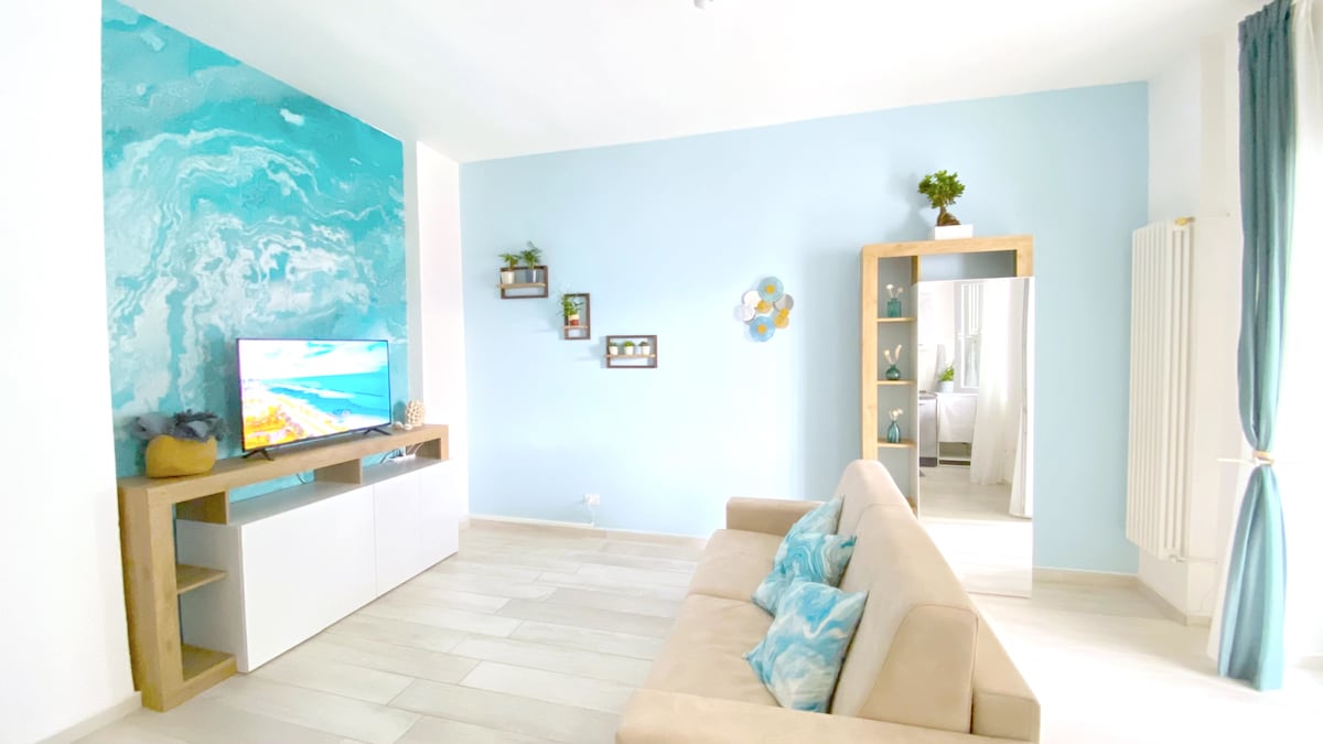 ДОСТУПНО для ДОЛГОСРОЧНЫХ БРОНИРОВАНИЙ (на длительный срок от 1 месяца супер скидки: запросите нас в чате Airbnb, чтобы договориться об этом). Тихое место. Всё новое! На 5-м этаже здания (двухместный лифт). Балкон с видом на море. Wi-Fi, оптоволоконный, максимальная скорость. Все удобства ПОД ДОМОМ: пекарня, бар, кафе-мороженое, пиццерии, рестораны, самостоятельная прачечная, рынок... Напротив велосипедной дорожки Green Road, итальянский велосипедный Oscar. 2,5 км от платной автомагистрали A-14 Pescara Nord (в 4 минуты).