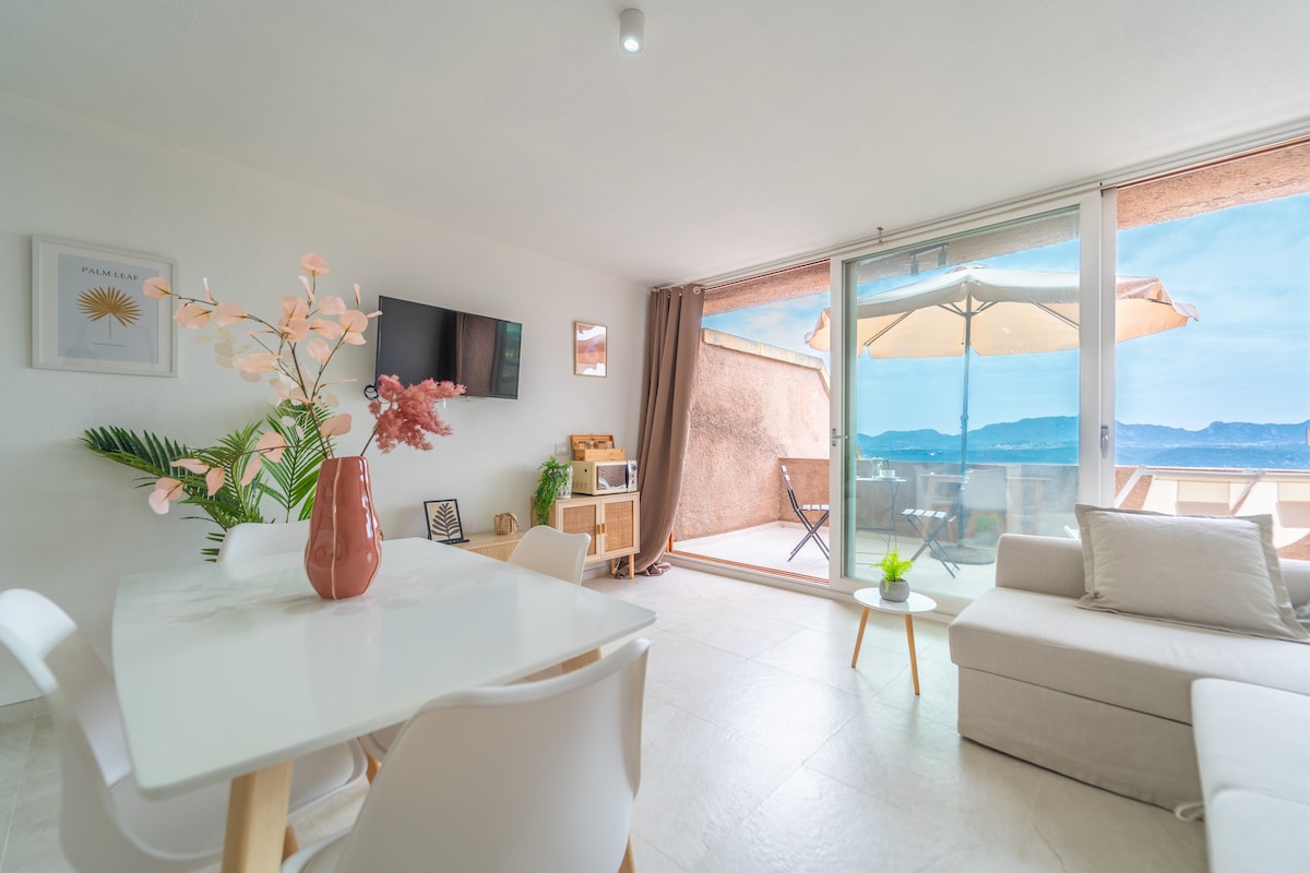 Наслаждайтесь отдыхом в этой элегантной квартире с террасой с видом на море, недавно отремонтированной и расположенной недалеко от красивых пляжей Коста-Смеральды. В квартире есть гостиная с диваном-кроватью (140x200), оборудованная кухня, спальня с двуспальной кроватью (160x200), современная ванная комната, прачечная и задняя веранда с видом на средиземноморский кустарник. В шаговой доступности вы найдете мини-маркеты, табачные лавки и рестораны. Есть Wi-Fi, 40-дюймовый телевизор Smart TV и бесплатная парковка.