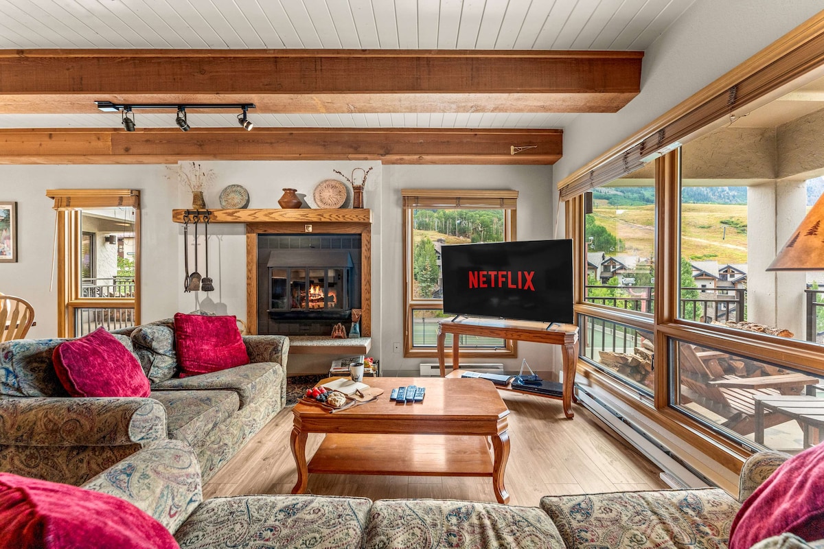 Этот двухэтажный двухкомнатный угловой блок с двумя ванными комнатами может вместить до 6 гостей и больше похож на дом, чем на таунхаус или кондоминиум. Из частного пространства открывается прекрасный западный вид на город Крестед-Бьютт, расположенный ниже, О, будьте радостным хребтом, горой Эммонс и Red Lady Bowl. Огромные панорамные окна, пропитанная солнцем терраса с домашними лыжными стульями Adirondack летом и осенью, частный газон и уютный газовый камин - идеальное место для катания на апрелях с друзьями и семьей. Закаты впечатляют.