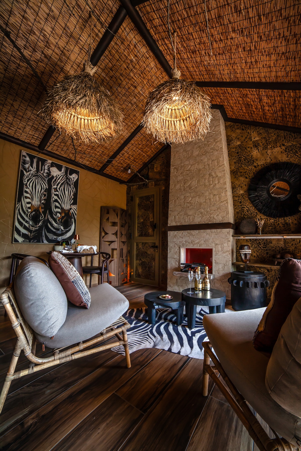 Необычное жилье: уединенный африканский отдых Приезжайте и получите уникальные впечатления в нашем необычном жилье для 2 человек, которое считается настоящим путешествием вне времени. Погрузитесь в сердце Африки с захватывающим и аккуратным декором, сочетающим аутентичность и современный комфорт. • Полная смена обстановки гарантирована. • Частное джакузи для незабываемых моментов отдыха. • Сауна для оздоровительного отдыха. • Теплая африканская атмосфера, изысканный декор.