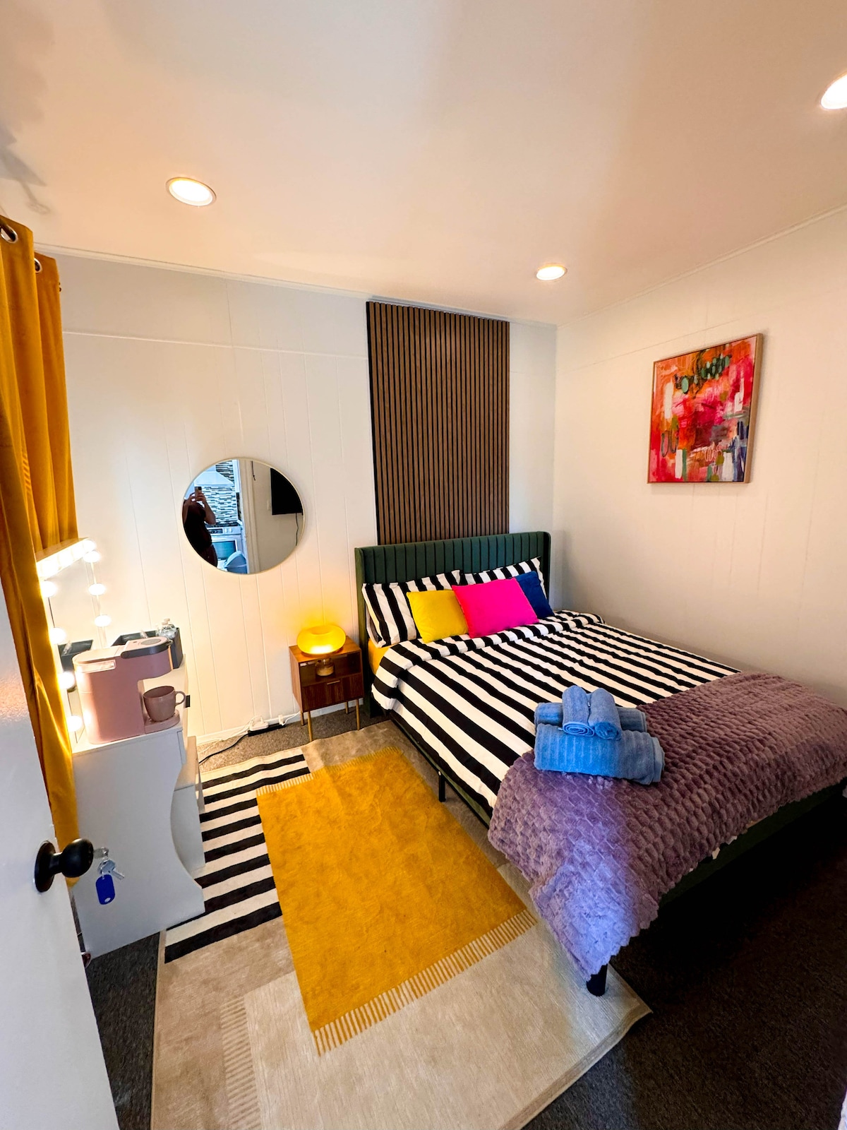 Добро пожаловать в ваше спокойное убежище в городе. Этот стильный дом с 2 спальнями и 2 ванными комнатами расположен в тихом районе всего в 2 минутах от огромного красивого парка, идеально подходящего для утренних прогулок или вечерних перезагрузок. Наслаждайтесь просторной гостиной, полностью оборудованной кухней🥣, мягкими кроватями и полноразмерным футоном. Рядом с городом🚌, но тихо и спокойно. Это убежище, а не место для вечеринок. Большой телевизор со Smart TV. Вечеринки, курение и домашние животные запрещены. Доступна ранняя сдача багажа и трансфер из/до аэропорта. Wi-Fi.