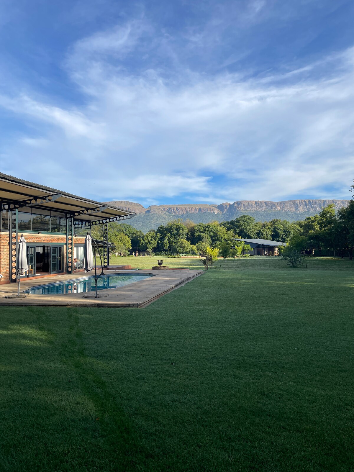 Спокойная обстановка с захватывающим видом на горы. Расположенный примерно в 70 км от Йоханнесбурга и Претории. 100 км от Сан-Сити, 130 км от Пиланес-Берг и 40 км от аэропорта Лансерия. В этом районе есть магазины, заповедники для животных, канатная дорога, рестораны, кино и т. д. Мы находимся в природном поместье с бесплатными бродячими животными, фауной и флорой, ожидаемой в таком поместье. Дополнительные или дневные посетители не допускаются. Возможность шума от курорта, поля для гольфа и строительных мероприятий.
